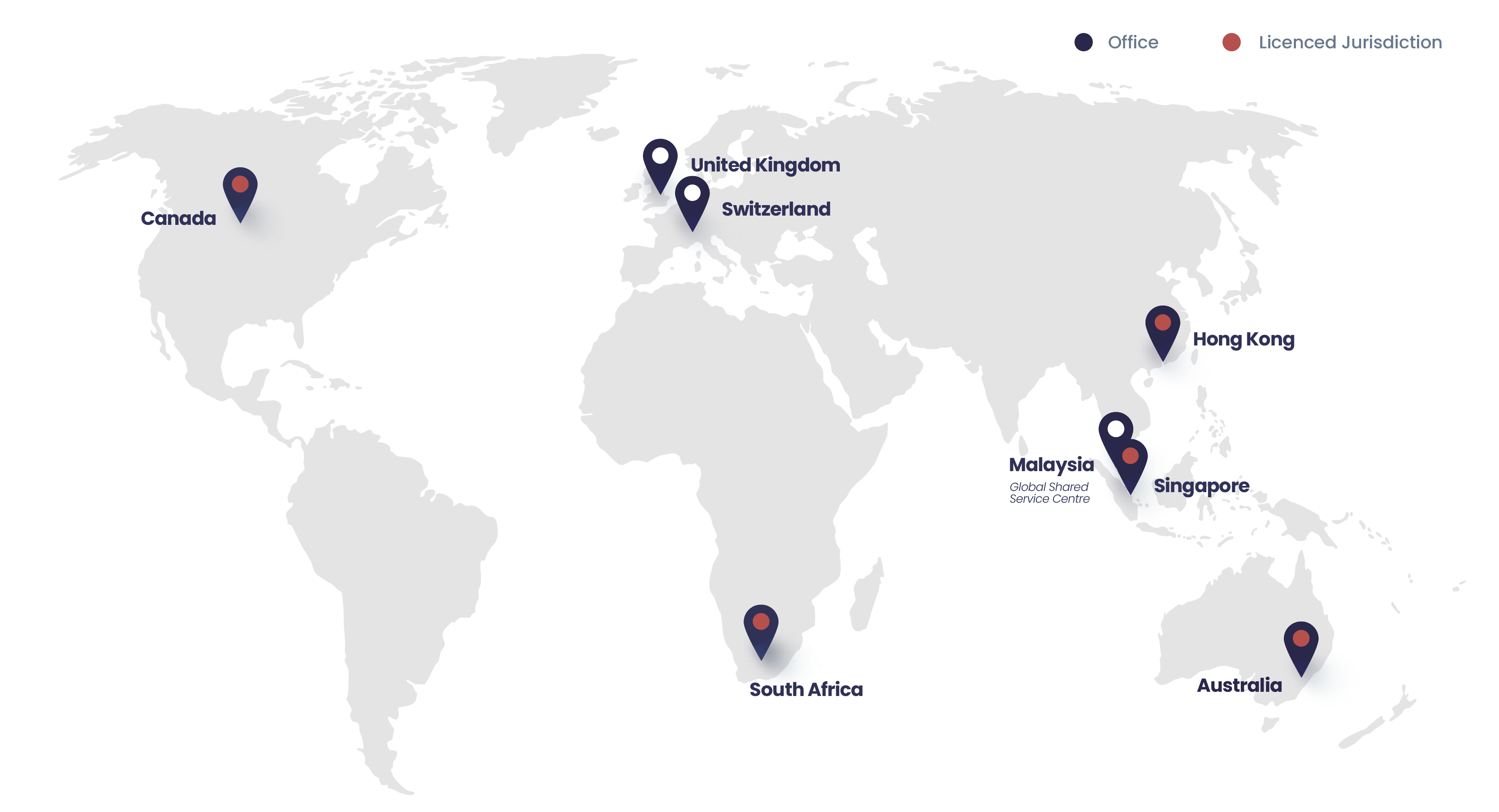 Clients transact securely, through our regulated presence across Singapore, Australia, Canada, Hong Kong and South Africa, supported by our shared services centre in Malaysia.
